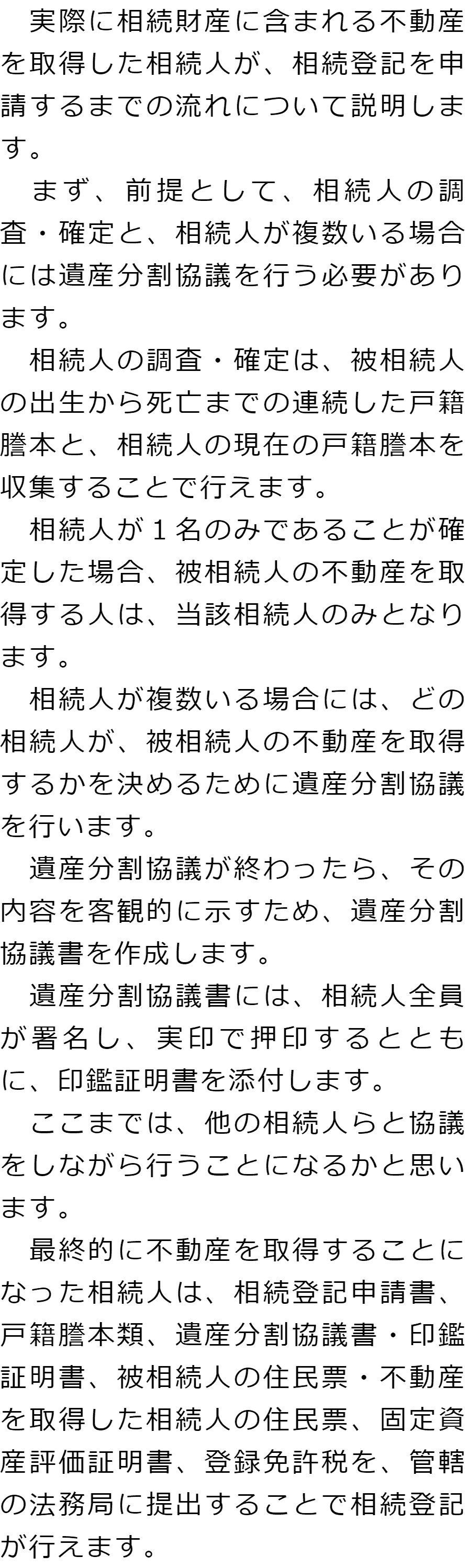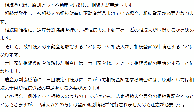 相続登記を申請する人についてのQ&AQ相続登記は誰が申請するのですか?Q相続登記を申請するまでの流れについて教えてください Q相続登記は誰が申請するのですか?AQ相続登記を申請するまでの流れについて教えてくださいA お役立ち情報・Q&A(目次)お役立ち情報・Q&Aトップお役立ち情報相続登記の手続きの流れマンションを相続した場合の手続きQ&A相続登記を申請する人についてのQ&A 受付時間 平日 9時~21時、土日祝 9時~18時 夜間・土日祝の相談も対応します (要予約) 所在地 〒120-0034 東京都足立区千住2-4オカバツインタワービル イースト5F 0120-41-2403 お問合せ・アクセス・地図